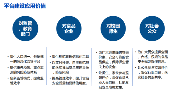 除此之外,現(xiàn)場智能化設(shè)備還會自動針對工作人員的非規(guī)范操作進行現(xiàn)場教育和行為糾正,督促工作人員逐漸養(yǎng)成良好的行為規(guī)范,確保因責(zé)任意識不強而導(dǎo)致的食安風(fēng)險存在。整套系統(tǒng)采用物聯(lián)網(wǎng)、云計算技術(shù)、視頻分析技術(shù)、大數(shù)據(jù)分析技術(shù)等,全程監(jiān)控整個食堂食品制作過程,讓食物制作環(huán)節(jié)360度無死角呈現(xiàn)。此系統(tǒng)不僅有利于食堂、餐飲等企業(yè)管理人員、上級主管部門及政府市場監(jiān)管部門實現(xiàn)高效監(jiān)管,更為保障食堂食品安全提供了更為有力的技術(shù)保障!