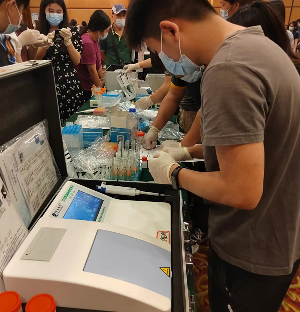 在實(shí)操培訓(xùn)環(huán)節(jié),現(xiàn)場(chǎng)采取分組的形式進(jìn)行,每組配備指導(dǎo)老師,及時(shí)解答參會(huì)人員在實(shí)操中遇到的問題。同時(shí),結(jié)合操作規(guī)范進(jìn)行詳細(xì)講解,針對(duì)性強(qiáng)、直觀效果比較好。從稱樣細(xì)節(jié)、樣品搖勻、移液、吹干、滴卡、讀卡等,均一一指導(dǎo)解答,有效提升了快檢從業(yè)人員理論知識(shí)和實(shí)操能力。