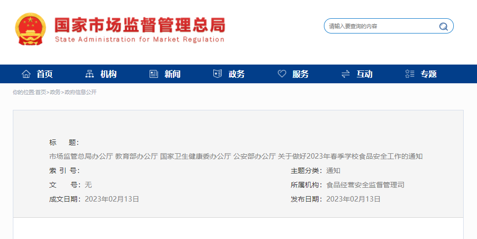 重磅 | 事關(guān)春季學(xué)校食品安全!國家四部門聯(lián)合發(fā)文