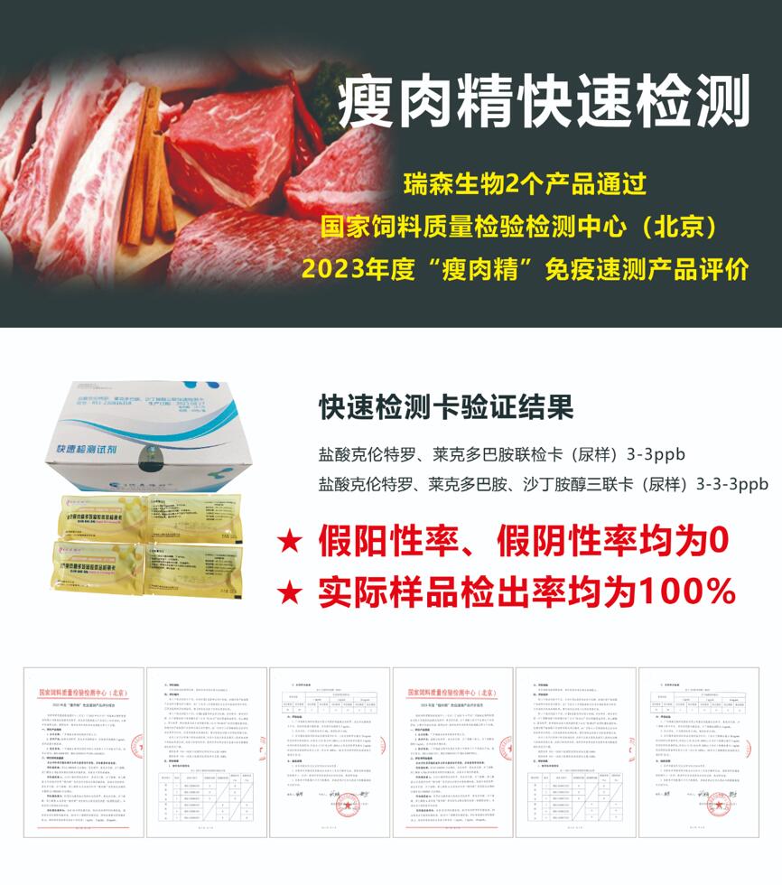喜訊 | 瑞森生物2款產(chǎn)品通過2023年“瘦肉精”免疫速測(cè)產(chǎn)品評(píng)價(jià)!